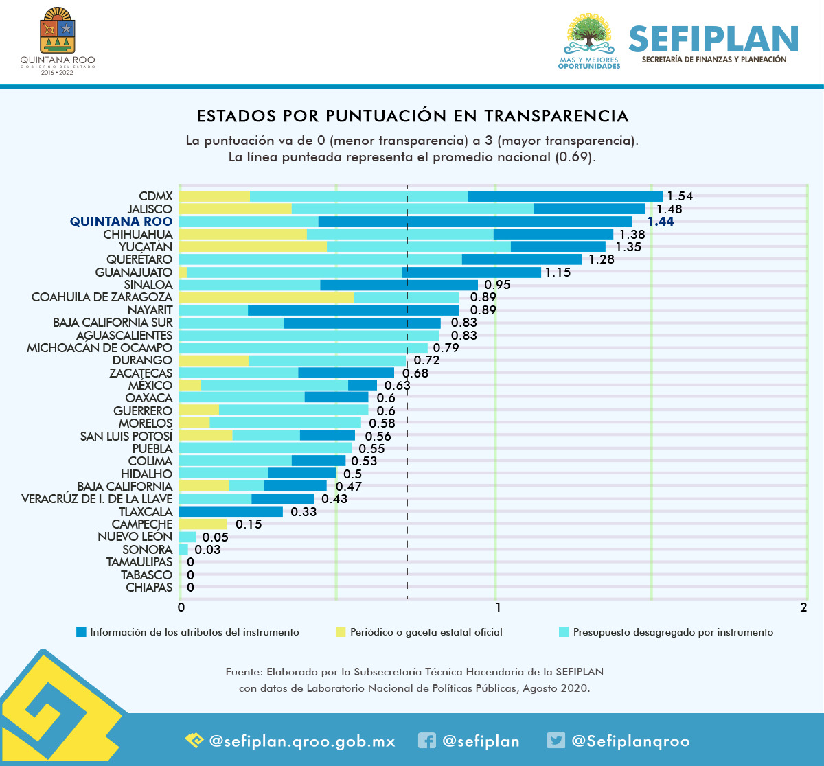 Chetumal, Q. Roo, Jueves 15 de Octubre de 2020, poderycrítica. – Derivado del informe “Federalismo en COVID: ¿Cómo responden los gobiernos estatales a la pandemia?” publicado por el Laboratorio Nacional de Políticas Públicas del Centro de Investigación y Docencia Económica, la Secretaria de Finanzas y Planeación (SEFIPLAN) da a conocer que Quintana Roo se posicionó en el tercer lugar entre las 32 entidades federativas que han implementado algún tipo de instrumento para hacer frente a la pandemia por COVID-19.
