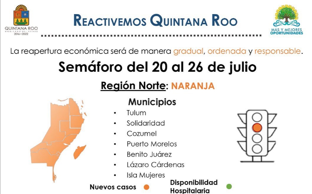 «Para Quintana Roo, el semáforo del estado, para esta semana y la próxima, es tal como fue indicado el día de ayer: Para la zona norte del estado en naranja y para la zona sur del estado en rojo», escribió en Twitter.