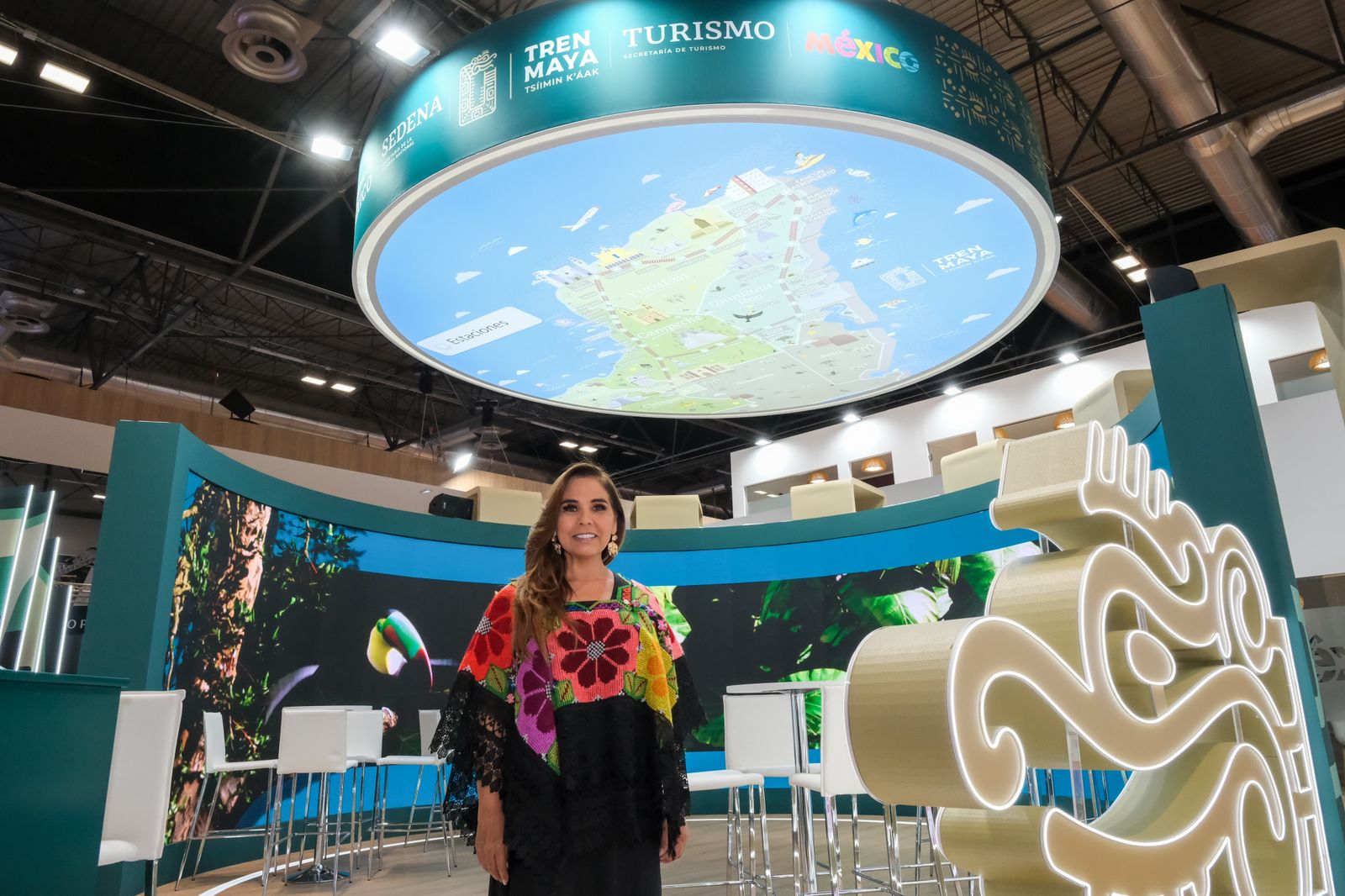 “Estamos en FITUR presentando el Tren Maya, el tren de la justicia social, que nos llevará a conocer los doce destinos de Quintana Roo en este su 50 Aniversario y este gran proyecto del presidente Andrés Manuel López Obrador nos permite con esta gran proyección que Quintana Roo viva una nueva era para el turismo”, dijo Mara Lezama.