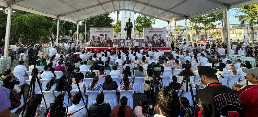 Después del homenaje cívico, la secretaria de gobierno Cristina Torres dio un mensaje a nombre de la gobernadora del estado Mara Lezama Espinosa, en la cual destacó la labor de mujeres artesanas y aportación de creadores de esta región maya.