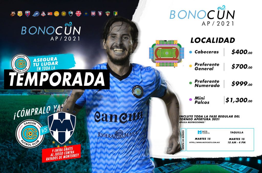 La directiva de ‘La Ola’ también pondrá a disposición de sus aficionados el ‘Bonocun’, que consistirá en adquirir su acceso para el amistoso del 26 y ocho juegos de la fase regular del Torneo Apertura 2021 de la Liga de Expansión MX.