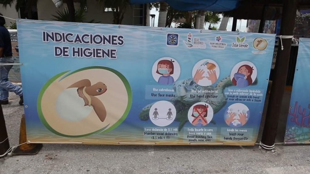 Asimismo, se colocó acrílico en las taquillas para que el contacto entre el trabajador de Tortugranja y visitantes sea con responsabilidad y, en diversos puntos del lugar, se tiene gel antibacterial: “Estamos cuidando la salud de todos, y nuestro personal sigue los lineamientos para romper las cadenas de propagación del virus”, recalcó García Canto, al resaltar que el uso de cubrebocas es obligatorio en las instalaciones y no deben quitárselo en ningún momento.