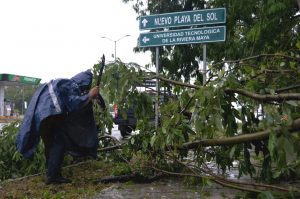 Playa del Carmen, Q. Roo, Jueves 19 de Agosto de 2021, poderycrítica.- Elementos de la Secretaría de Seguridad Pública y Tránsito municipal de Solidaridad continúan con el “Operativo Tormenta”, retiran árboles caídos, objetos y anuncios que se derrumbaron sobre calles y avenidas, con el paso del huracán Grace, en Playa del Carmen.