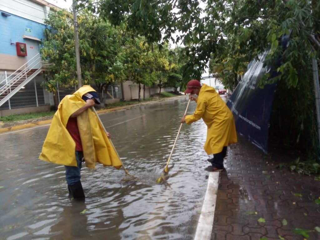 Personal de las dependencias redobló esfuerzos y se avocó a estas tareas a pesar de los fuertes vientos y lluvias, en el Centro y diversas colonias de Playa del Carmen, al igual que en la delegación de Puerto Aventuras.