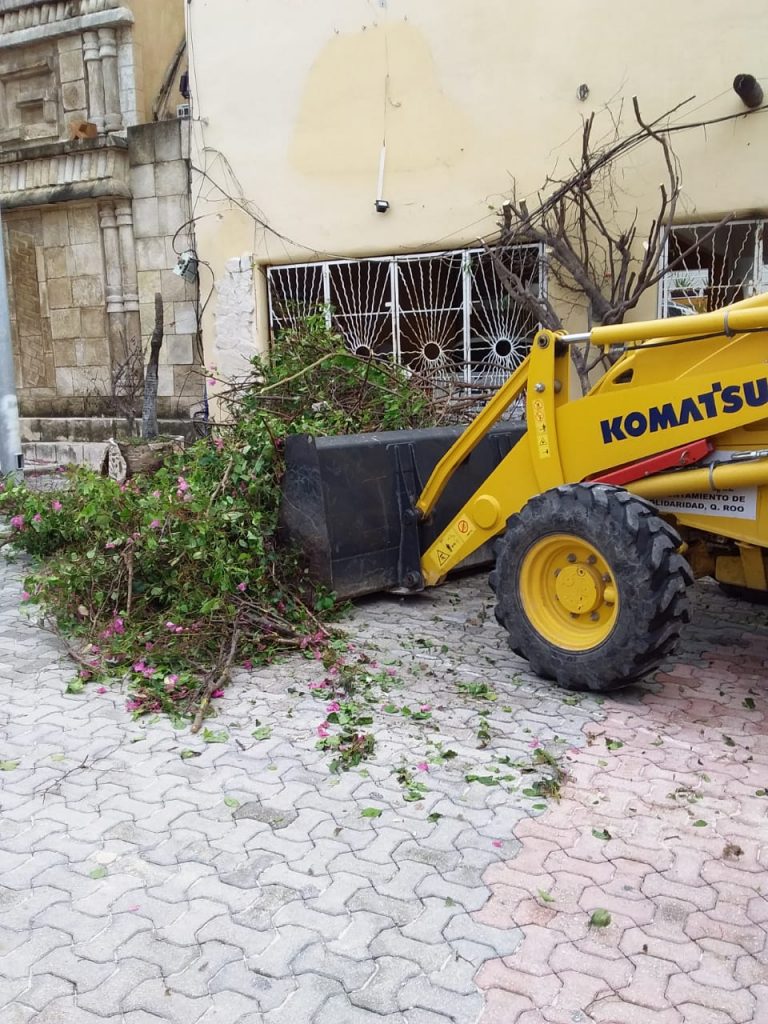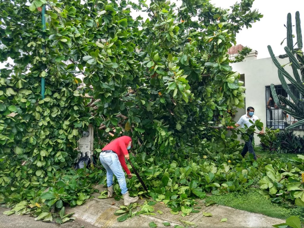 Apoyados con personal de Protección Civil y Bomberos, de forma puntual lograron podar y retirar árboles y ramas caídas que obstruían las vialidades, así como retirar postes de luz caídos, letreros, láminas, así como cables de energía caídos. Esto en coordinación con personal de la Comisión Federal de Electricidad (CFE), para evitar descargas durante la poda de árboles.