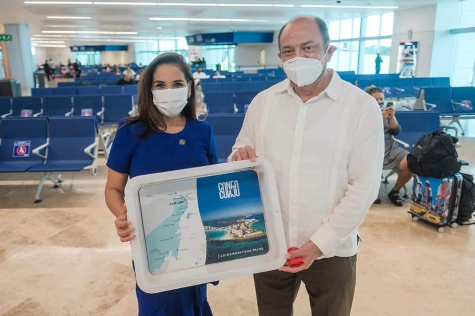 Al atestiguar el arribo con 282 pasajeros del vuelo internacional y cortar el listón de reinauguración, la Presidente Municipal, Mara Lezama, destacó que Cancún continúa avanzando a paso firme en el proceso de reactivación económica, aplicando protocolos internacionales de salud para recibir a turistas nacionales e internacionales, contando ahora con este vuelo que conecta nuevamente al Caribe Mexicano con Europa.