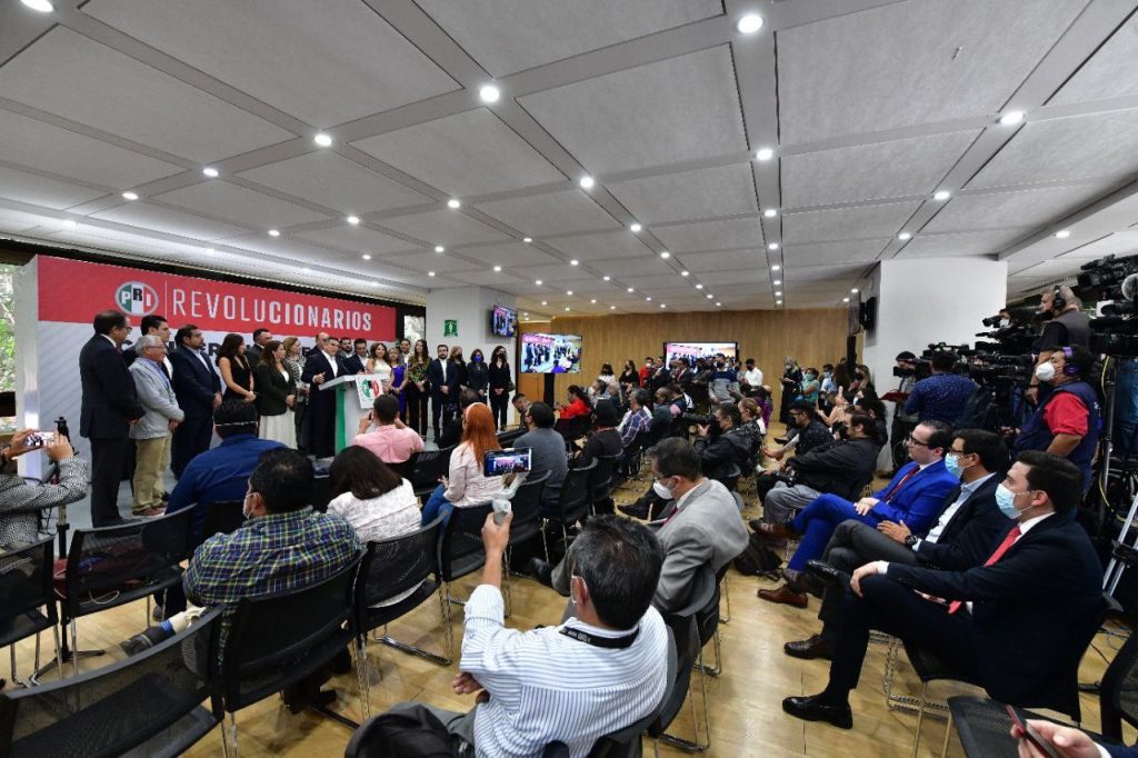 En compañía de la Secretaria General del CEN, Carolina Viggiano, y del Coordinador del Grupo Parlamentario del PRI en la Cámara de Diputados, Rubén Moreira, el Presidente Alejandro Moreno encabezó una conferencia de prensa, en la que subrayó que el PRI es un partido “fuerte, sólido y dinámico”, que estará siempre “apoyando con todo” y estrechando su relación con la militancia.