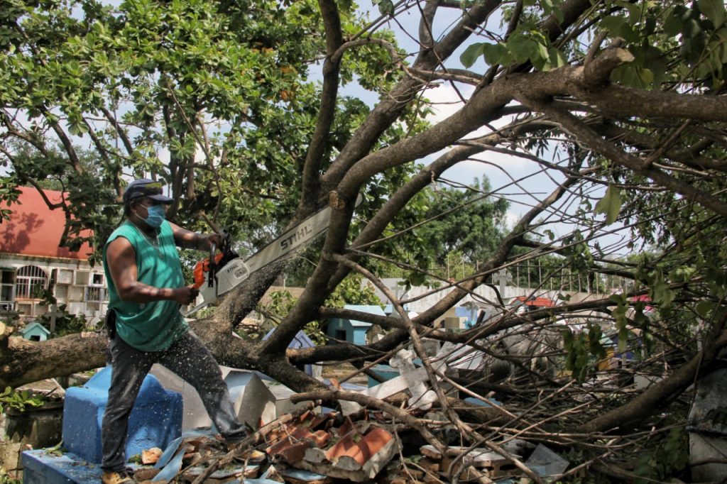 Moreno Porihe destacó que están atendiendo otras acciones más en el interior del panteón en donde se cayó un árbol grande a un costado de la capilla, así como el retiro de maleza que se encuentra en el lugar, y el retiro de un árbol en el exterior de las instalaciones.