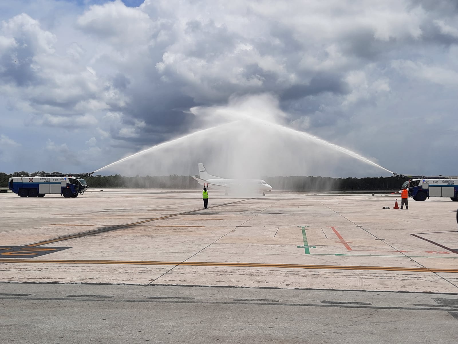El vuelo inaugural de la ruta fue recibido en el Aeropuerto Internacional de Cancún con el tradicional arco de agua y una ceremonia solemne que contó con la participación de autoridades de Guatemala y México.