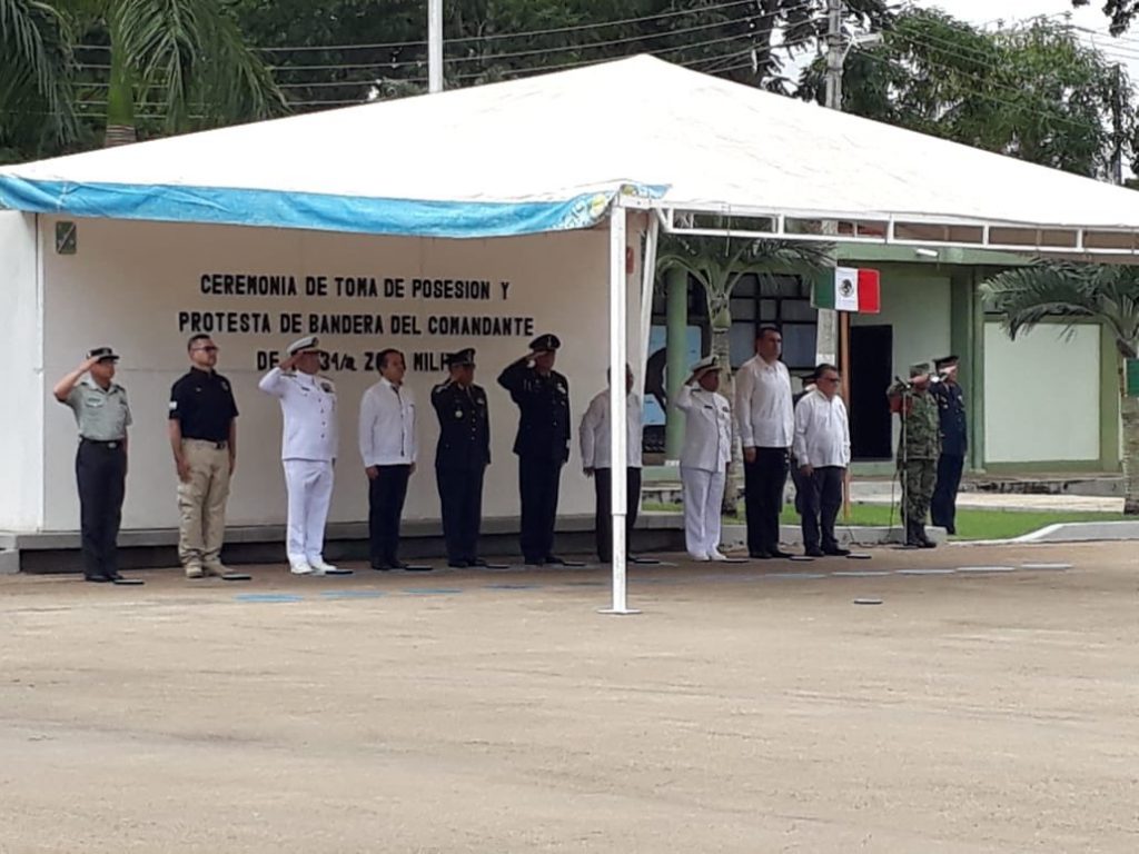 Chetumal.- José Luis Vázquez Araiza, General de Brigada Diplomado Estado Mayor, rindió protesta esta mañana como Comandante de la 34 Zona Militar con sede en Chetumal, en sustitución del General de Brigada Diplomado de Estado Mayor, Miguel Ángel Huerta Ceballos.