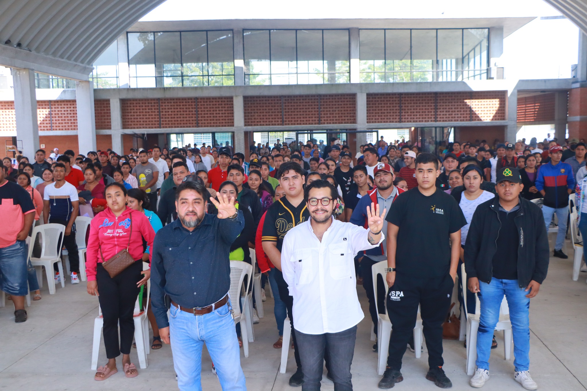 En su intervención, el coordinador estatal de Jóvenes Construyendo el Futuro, Lic. Luis Toledo Bertruy, recordó que este programa del Gobierno de México une la experiencia de los centros de trabajo con la energía de los jóvenes para impulsar las oportunidades laborales en el país y, con ello, contribuir en la economía de los beneficiarios y sus familias, esto mediante la capacitación en un Centro de Trabajo por hasta doce meses, que permite obtener una constancia de capacitación y recibe una beca mensual de $7,572.00, así como contar con seguro médico del IMSS durante la capacitación.