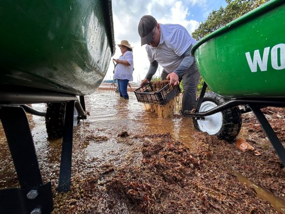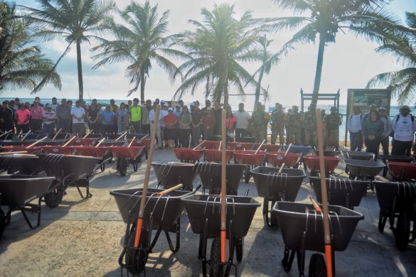 Detalló que para esta jornada en coordinación con el Ayuntamiento se entregaron equipo, maquinaria que consta de carretillas, rastrillos entre otros accesorios para la limpieza del sargazo en las playas de Mahahual.