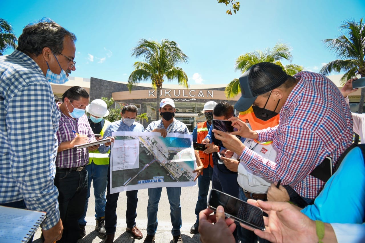 Durante el trayecto, personal de SICT y de la Agencia de Proyectos Estratégicos del Estado de Quintana Roo (AGEPRO), presentaron soluciones viales para los entronques y los derechos de vía para los 8.8 km del puente, partiendo del entronque que conecta con el distribuidor vial Kabah-Bonampak-Rodrigo Gómez y Boulevard Luis Donaldo Colosio, como también el kilómetro 13 del boulevard Kukulkán en las inmediaciones de Plaza Kukulkán.