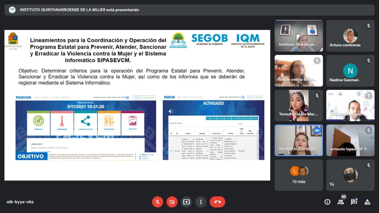 Chetumal, Q. Roo, Martes 09 de Noviembre de 2021, poderycrítica.- Para alcanzar la eliminación de la violencia contra las mujeres e impulsar la igualdad sustantiva en todos los ámbitos de desarrollo en el Estado, hoy se realizó de manera virtual la XVI Sesión Ordinaria del Sistema Estatal para Prevenir, Atender, Sancionar y Erradicar la Violencia contra las Mujeres y la XII Sesión Ordinaria del Sistema Estatal de Igualdad entre Mujeres y Hombres.