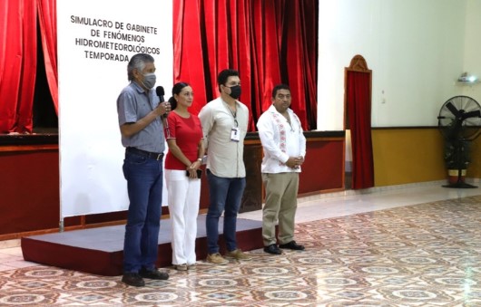 Como parte de este simulacro de gabinete, la jefa de normatividad, Judith Aracely Argüelles Camaal y el instructor de Protección civil, Arturo Álvarez Rojo, aplicaron la actividad simulada con hipótesis de un huracán categoría cinco, de nombre “Chaac” que se acerca a la Isla de Cozumel.
