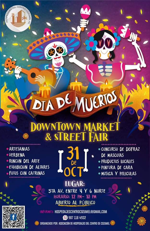 Cozumel, Quintana Roo, martes 26 de octubre del 2021, poderycritica.- La Asociación de hospedajes del centro preparan el Downtown Market & Street Fair a realizarse el próximo 31 de octubre en calles de la centro de la Isla de Cozumel, donde además de conmemorar el día de muertos, se busca incentivar el hospedajes y a los empresarios con la visita de turismo además de distintas actividades, señalo el presidente de la asociación Franco González.