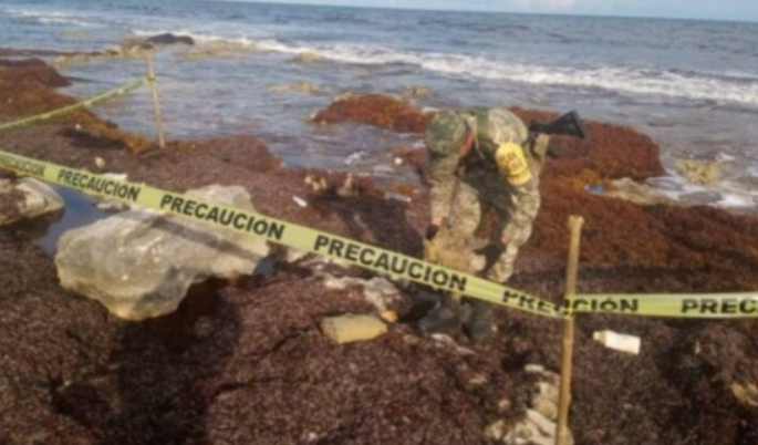 El material recaló a la orilla y fue detectado por personal militar durante un recorrido por el sitio, como parte de la estrategia Plan Nacional de Paz y Seguridad 2018-2024.