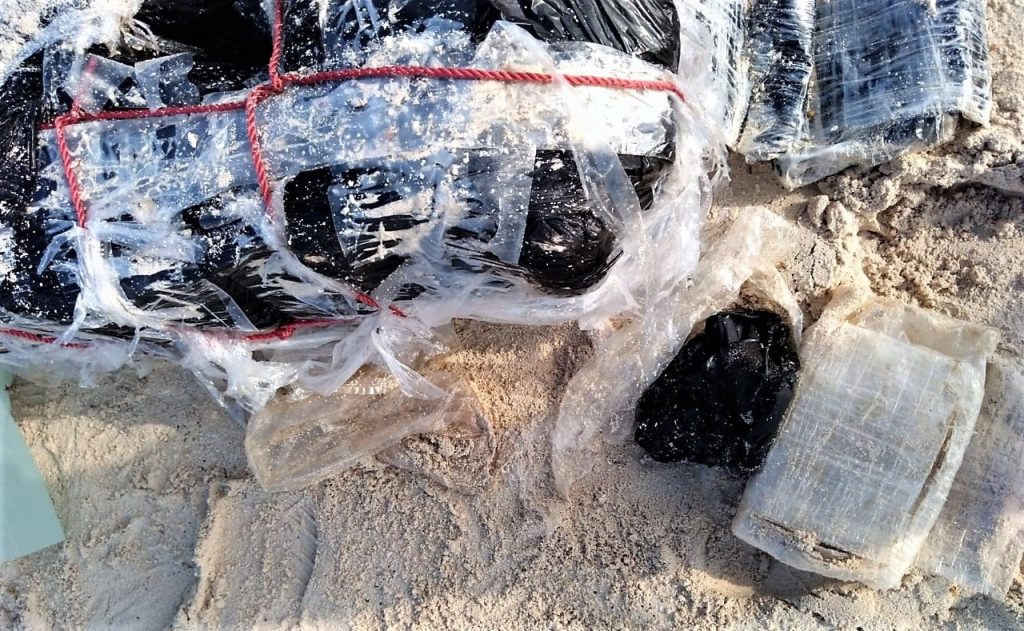 Generalmente cuando sucede este tipo de recales en las costas quintanarroenses, es señal de que a algunas millas náuticas se ha llevado a cabo el trasiego de droga desde algún país centroamericano o desde Sudamérica y alguno de los bultos se pierden en el mar.