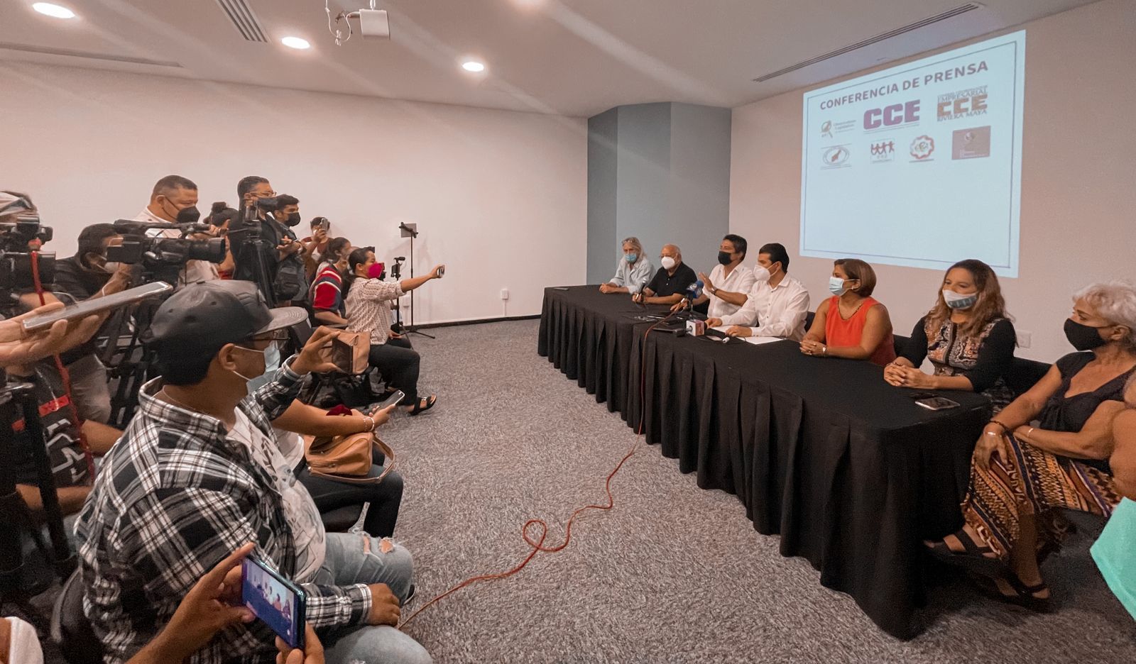 Cancún, Q. Roo, lunes 13 de septiembre de 2021, poderycrítica.- En conferencia de Prensa llevada a cabo por la mañana, diversos representantes de la sociedad civil, sector empresarial, dignatarios Mayas y ex legisladores de Quintana Roo, rechazaron enérgicamente la iniciativa de los diputados de la actual Legislatura, quienes pretenden llevar a cabo una reforma constitucional que les permita la reelección hasta por cuatro periodos consecutivos o 12 años. Iván Ferrat, presidente del Consejo Coordinador del Caribe CCE, ponderó la diversidad de liderazgos que se presentaron y manifestó su rotundo rechazo a la iniciativa presentada afirmando: “En este documento hicieron un copy paste de una reforma electoral federal que se hizo en 2014 y la intención de los diputados de homologar dicha reforma fue sin considerar que Quintana Roo es un estado soberano”.