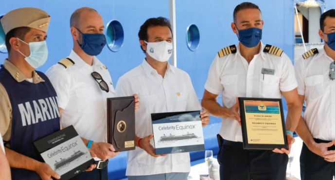 “De nueva cuenta le dimos la bienvenida al Celebrity Equinox, que retornó a Cozumel en esta nueva etapa de la pandemia, siendo el segundo crucero de la empresa Celebrity que llega a la isla”, señaló Pedro Joaquín.