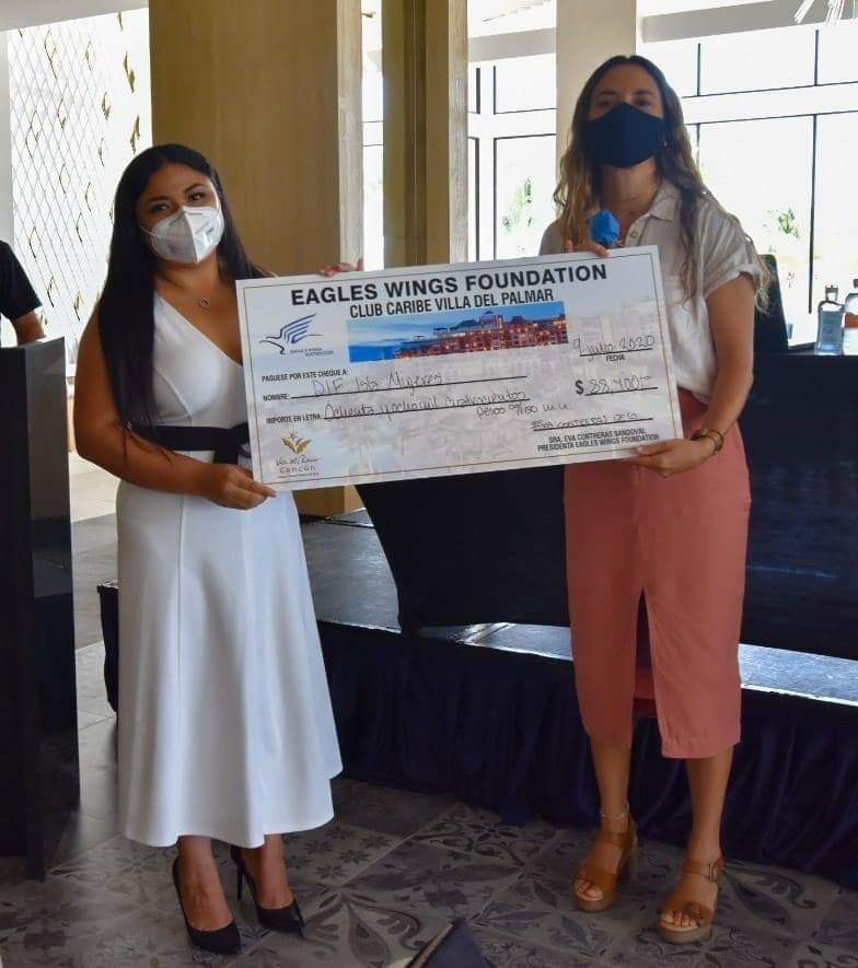 El donativo fue entregado por Julieta Reynoso, directora de la fundación “Alas de Águila Cancún” y por Juan Carlos González, gerente general de Villas Palmar Cancún, quienes se sumaron al impulso de la reactivación del municipio para beneficiar a los ciudadanos.