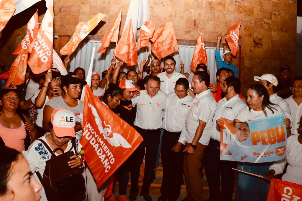 Con la presencia del delegado de MC en el estado, Jacobo Cheja;  la diputada local de Jalisco del partido naranja, Rocío Aguilar; el coordinador nacional de Vinculación Agropecuaria, Pedro Jiménez León; y el coordinador de los candidatos a diputados en el municipio de Benito Juárez Jesús Pool Moo, el actor y empresario Roberto Palazuelos hizo patente su apoyo al Dr. Pech e invitó a los ciudadanos de Quintana Roo a votar por él el próximo cinco de junio, porque es la mejor opción y sin duda hará un gobierno decente.