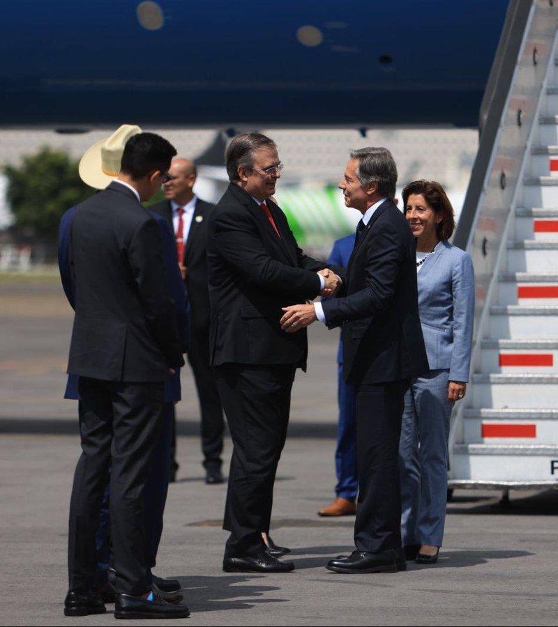 PODER Y CRÍTICA | REDACCIÓN | El canciller Marcelo Ebrard recibió este lunes al secretario de Estado, Antony Blinken y a la secretaria de Comercio Gina Raimondo, en la Base Aérea Militar 19.