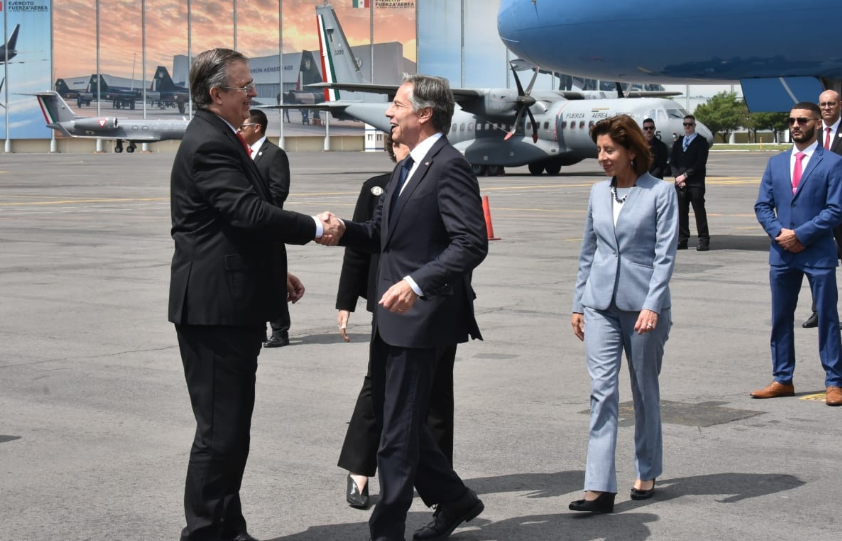 PODER Y CRÍTICA | REDACCIÓN | El canciller Marcelo Ebrard recibió este lunes al secretario de Estado, Antony Blinken y a la secretaria de Comercio Gina Raimondo, en la Base Aérea Militar 19.