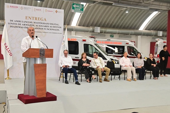 Por su parte, la directora general del Instituto de Beneficencia Pública del Estado de Tabasco, Maricel Santandreu Palacio, informó que hoy se donan y entregan 36 ambulancias y un mastógrafo a la Secretaría de Salud, provenientes de la Administración del Patrimonio de la Beneficencia Pública.