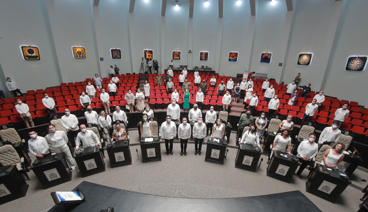 En la sesión solemne, en la que se tomaron las medidas sanitarias y de sana distancia de la nueva normalidad, se contó con la presencia de las y los presidentes municipales de los Ayuntamientos del estado, así como de secretarios de gabinete y representantes de las fuerzas armadas.