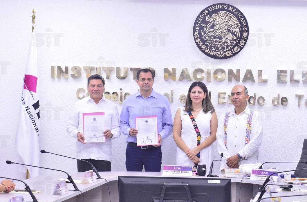 PODER Y CRÍTICA | REDACCIÓN | El Consejo Local del Instituto Nacional Electoral (INE) entregó las constancias de mayoría que acreditan como senadores electos por Tabasco a Alejandra Arias Trevilla, suplente de Rosalinda López Hernández, y Óscar Cantón Zetina, ambos postulados por el partido Movimiento Regeneración Nacional (Morena). Además, se otorgó la constancia de primera minoría a José Sabino Herrera Dagdug del Partido de la Revolución Democrática (PRD), de la coalición Fuerza y Corazón por México (PAN-PRI-PRD).