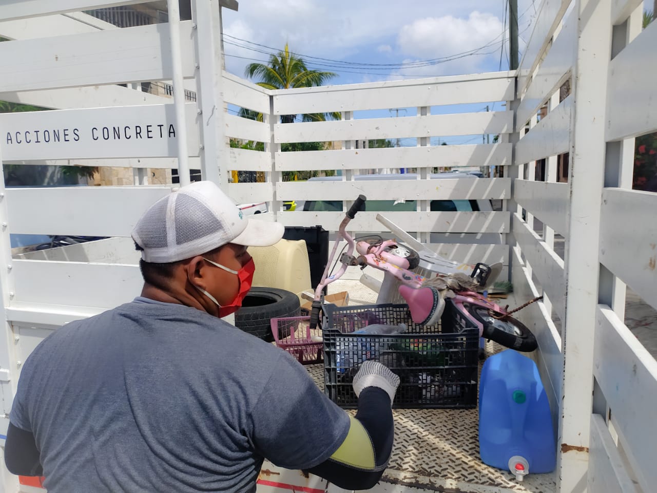 Cozumel, Q. Roo, Jueves 09 de Julio de 2020, poderycrítica.- Con el objetivo de disminuir los brotes de mosquitos y de esta forma mantener la salud de los cozumeleños, lo que es prioridad del Presidente Municipal, Pedro Joaquín Delbouis, a través el Centro de Acopio de Materiales Reciclables (CAMAR), llevó a cabo el programa permanente de descacharrización a las colonias Inviqroo, Maravilla y Flamingos.