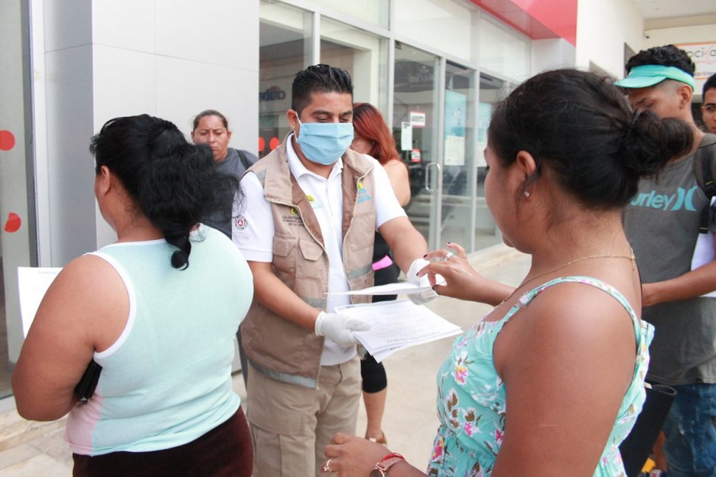 Cancún, Q. Roo, Jueves 26 de marzo de 2020, poderycrìtica. – La Coordinación Estatal de Protección Civil (COEPROC) informó a la ciudadanía benitojuarense que acudieron a plazas y bancos, sobre las medidas preventivas a seguir para prevenir contagiarse del COVID-19, garantizando más y mejor salud a la población con estas acciones.
