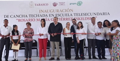 La alumna de la escuela, Ana Patricia López López, agradeció –en lengua chol–, al grupo empresarial y a las autoridades la entrega de la obra de alto impacto social y la también estudiante Auria Geraldine Asunción García, ofreció una poesía a los asistentes. La telesecundaria “Rosa María Gutiérrez Eskildsen”, fue fundada el 09 de octubre de 1982.