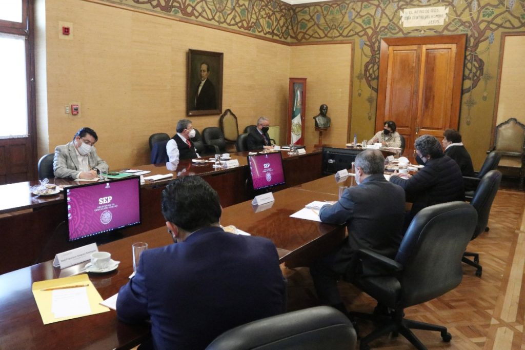 En reunión de trabajo con el equipo directivo de la dependencia con motivo del fin de cursos en las escuelas públicas y particulares del Sistema Educativo Nacional, Gómez Álvarez, destacó la vocación de maestras y maestros para mantener, en sus distintos contextos, el acceso a los servicios educativos de niñas, niños, adolescentes y jóvenes.