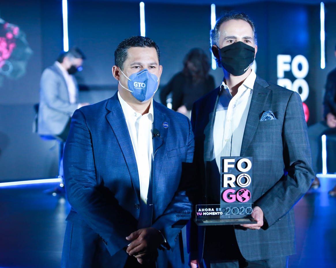 León, Guanajuato, Viernes 13 de Noviembre del 2020, poderycrítica.- El Gobernador del Estado, Diego Sinhue Rodríguez Vallejo, entregó reconocimientos a empresarios guanajuatenses que implementaron estrategias para vender sus productos al mundo a través del cross border, eCommerce y Marketing Digital.