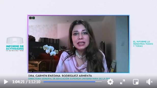 Al participar en la ceremonia virtual, la Dra. Carmen Enedina Rodríguez Armenta, Directora General de Educación Superior Universitaria de la Secretaría de Educación Pública, afirmó que la Dra. Priscila Sosa es una de las mejores rectoras que tiene el país, con gran responsabilidad, liderazgo académico y sentido humano.