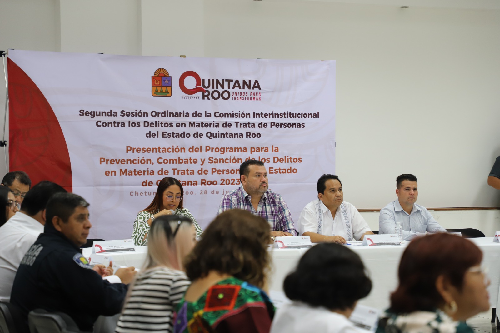 En la Escuela del Poder Judicial del Estado, durante la Segunda Sesión Ordinaria de la Comisión Interinstitucional contra los Delitos en Materia de Trata de Personas, se presentó el Programa para la Prevención, Combate y Sanción de los delitos en Materia de Trata de Personas del Estado de Quintana Roo 2023-2027.
