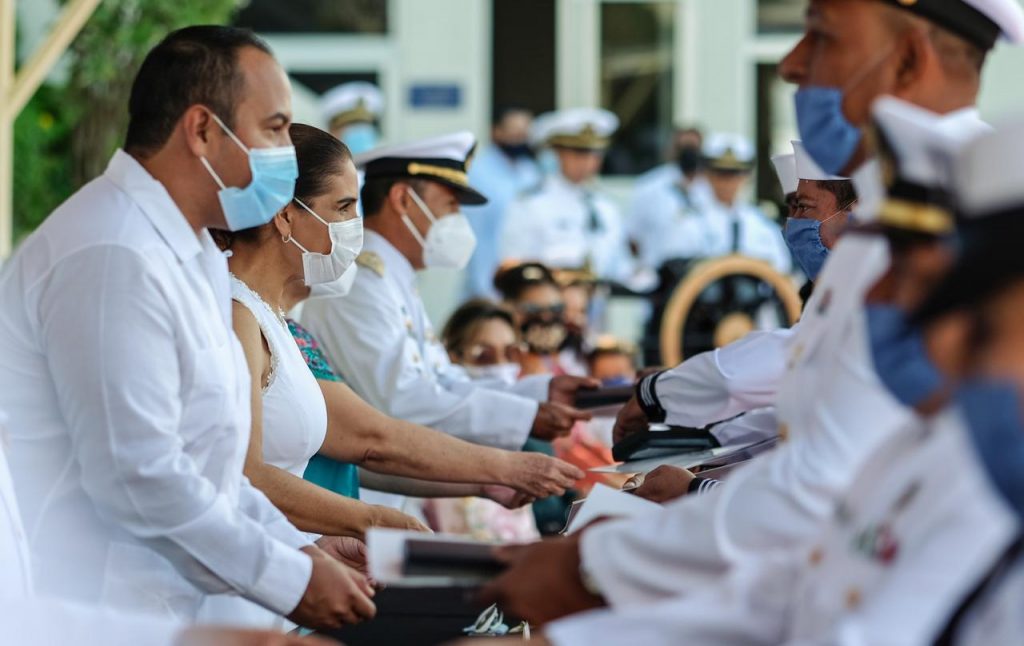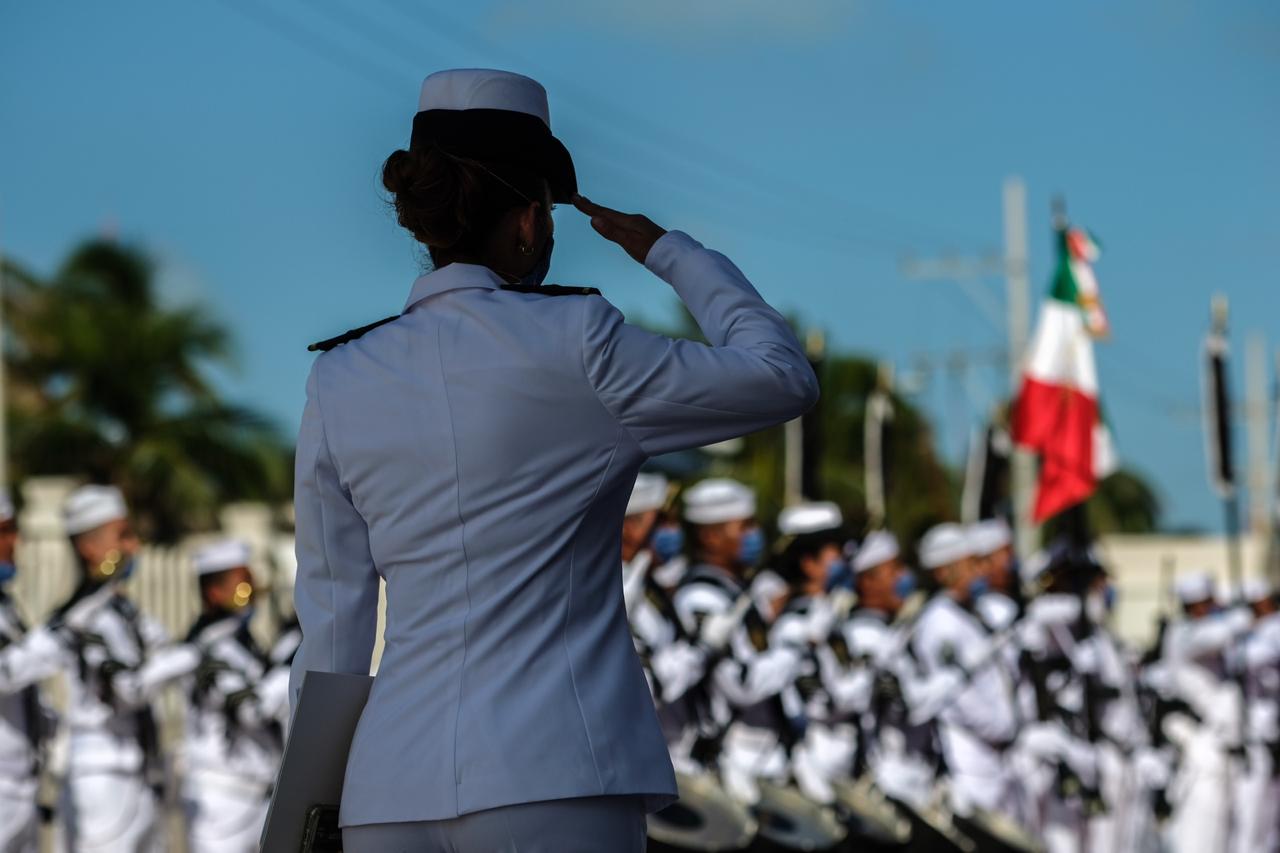 La Presidente Municipal de Benito Juárez, Mara Lezama, participó en el evento realizado en la explanada de la Quinta Región Naval en la ínsula, encabezado por el gobernador Carlos Joaquín González, junto con el comandante de la institución, Almirante Cuerpo General Diplomado Estado Mayor, José Luis Vergara Ibarra.