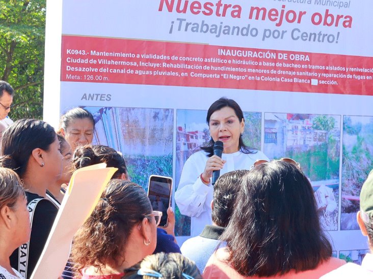 Esta obra, destacó la edil, reducirá la incidencia de anegaciones por lluvias intensas, ya que facilitará la salida del agua hacia el río Grijalva, evitando su acumulación excesiva en la laguna El Negro.