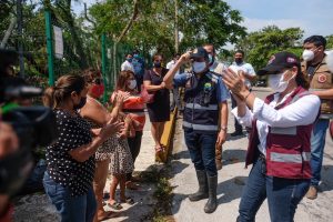Cancún, Q. Roo, Jueves 08 de Octubre del 2020, poderycrítica.- Continuando con la atención y mantenimiento de la ciudad luego del paso del huracán “Delta”, que tocara tierra como categoría 2, la Presidente Municipal de Benito Juárez, Mara Lezama, acudió al auxilio de la población en las zonas más vulnerables de la ciudad, acompañada de Gobernador del Estado, Carlos Joaquín González y su esposa, la Presidenta del DIF en la entidad, Gabriela Rejón.