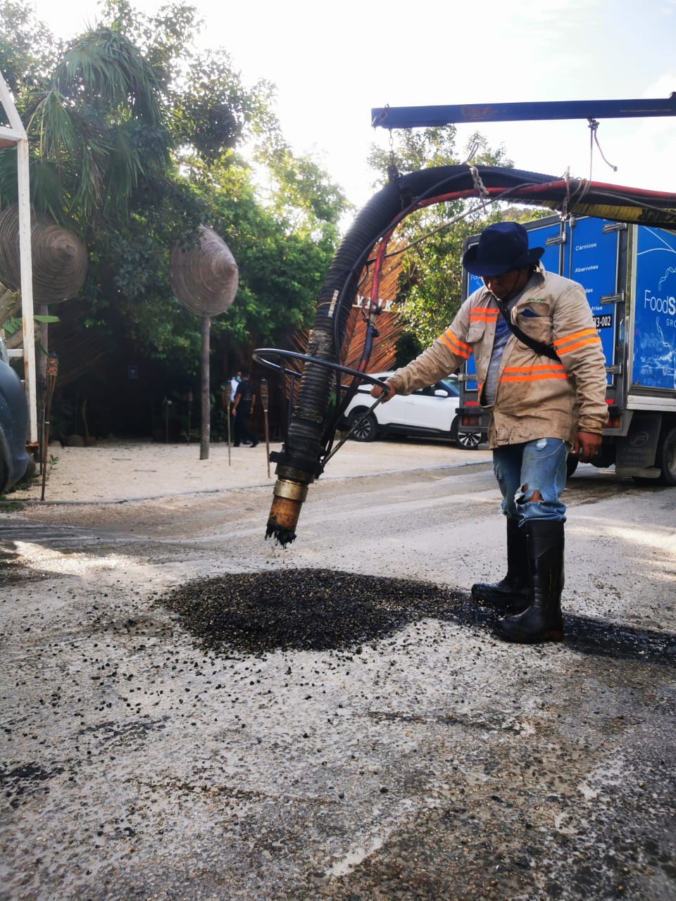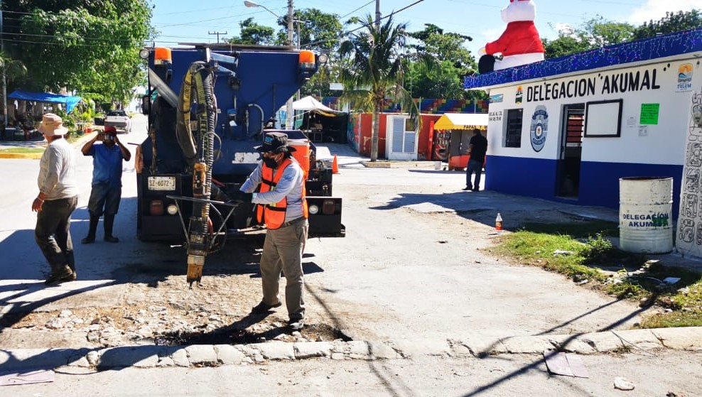 El director de Servicios Públicos Municipales, Adrián Manzanilla Lagos, señaló que por instrucciones del presidente municipal Víctor Mas, se realizan trabajos de bacheo y mantenimiento del alumbrado público sobre la avenida Gonzalo Guerrero en la delegación de Akumal y posteriormente continuarán en la subdelegación de Chemuyil en respuesta a las solicitudes de los habitantes, derivado de las afectaciones provocadas por las pasadas lluvias.