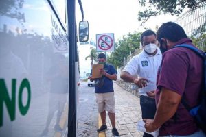 Isla Mujeres, Q. Roo, Viernes 13 de Noviembre del 2020, poderycrítica.- Con el objetivo de reforzar las medidas preventivas ante la pandemia del Covid- 19, el Ayuntamiento de Isla Mujeres a través de la dirección de Desarrollo Urbano y Medio ambiente repartió kits preventivos a ciudadanos en el transporte público del municipio.