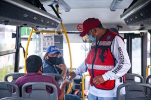 «Estas acciones se realizan a través de la dirección de Transporte para fomentar la utilización de cubrebocas y gel antibacterial en lugares públicos así como reforzar las medidas de sana distancia de por lo menos 1.5 metros entre personas», destacó Nivardo Fernández Martínez, director general de la dependencia.