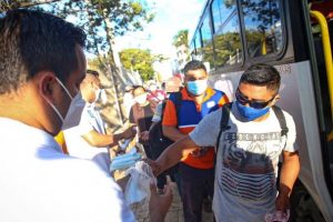 Durante las primeras horas del día realizaron un recorrido por las paradas de camiones para entregarles a los usuarios cubrebocas y gel antibacterial así como para recordarles la importancia de continuar cuidándose ante la pandemia que aún se encuentra activa.