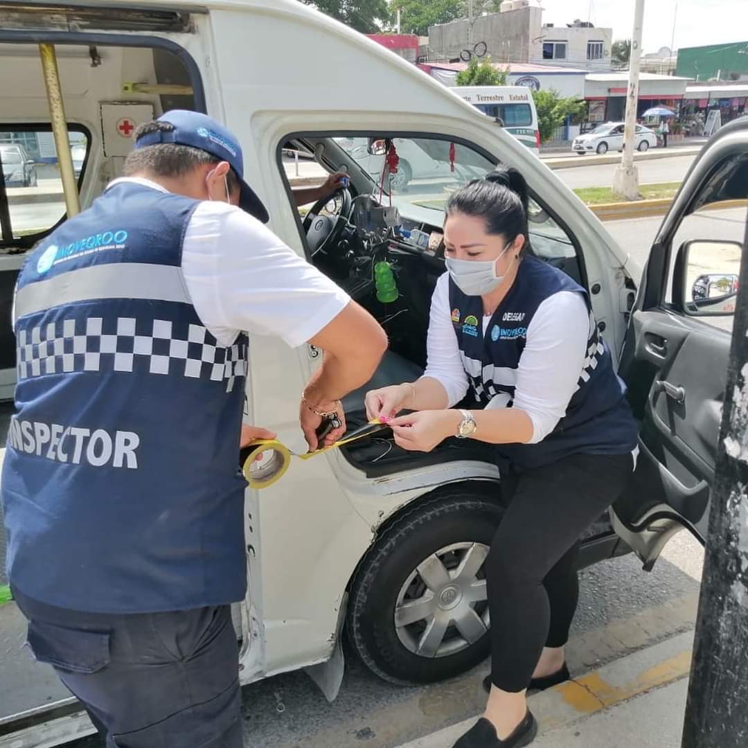 Cancún, Q. Roo, Domingo 16 de Agosto de 2020, poderycrítica.- El Instituto de Movilidad de Quintana Roo delegación Benito Juárez e Isla Mujeres, a cargo de Bibian Castillo, reforzó sus operativos de revisión en el transporte público, a fin de  checar que tanto el conductor como los pasajeros usen cubrebocas.