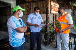 Para mantener informados a los paseantes turistas y nacionales se realizan las Brigadas de Chalecos Naranja, perifoneo, altavoces y carteles en idiomas español, inglés y maya, asimismo se refuerza la sanitización de unidades de transporte público, inspección para verificar el número de pasajeros y entrega de cubrebocas.