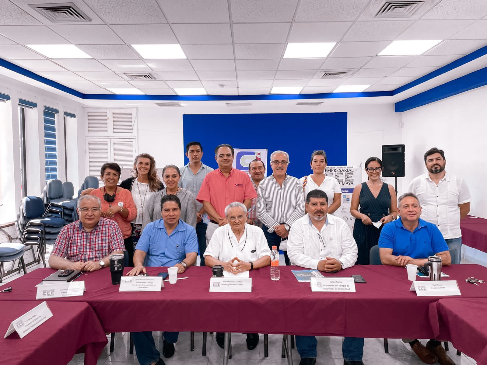 Estuvieron presentes en la reunión: Julián Carta, presidente del Colegio de Ingenieros de la RM; Manuel Paredes, director de la Asociación de Hotels de la Riviera Maya AHRM; Mónica Quiroz, asesora del CCERM; Jesús San José, presidente de SINDEMEX RM; Stefania Capelletti, de la AHRM; Otto Von Bertrab, representando a COPARMEX RM; Héctor Lizárraga, del Centro Ecológico Akumal; Erika Flores, del Consejo Quintanarroense de Ciencia y Tecnología COQCYT; Laura Patiño, presidente de Moce Yax Cuxtal; Francisco Pavón, presidente de AMPI RM; Olivia Onofre, presidente del CPCRM; Patricia Mar, de Moce Yax Cuxtal; y Araceli Sandoval, presidente de AMEXME RM.