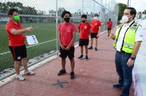 “El deporte se ha visto afectado en ciertas áreas, sobre todo para los espacios cerrados y la realización de partidos. Estamos recorriendo las unidades deportivas para recordar lo que se puede y no se puede hacer”, indicó el titular del IMD, David Martínez, durante el recorrido por la Unidad Deportiva de la Región 251.