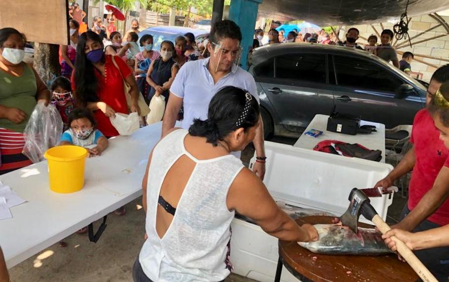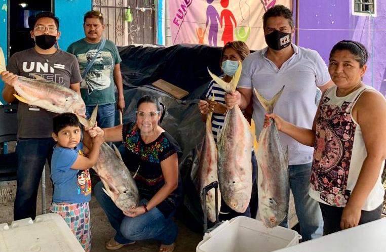 Solidaridad, Q. Roo, Miércoles 23 de septiembre de 2020, poderycrítica.- la asociación civil “Uniendo a Quintana Roo Rumbo al Futuro”, hizo entrega de más de 300 kilos de pescado fresco en Villas del Sol, beneficiando a 200 familias de escasos recursos.